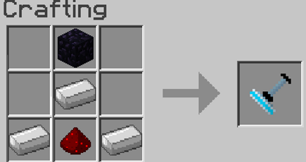 The recipe beneath is the portal gun recipe! By placing a miniature black hole in the middle, iron in the top-middle, full right row, and in the bottom left, following obsidian in the top-left and bottom-middle followed by a diamond in the left-middle, you make a default blue portal gun.